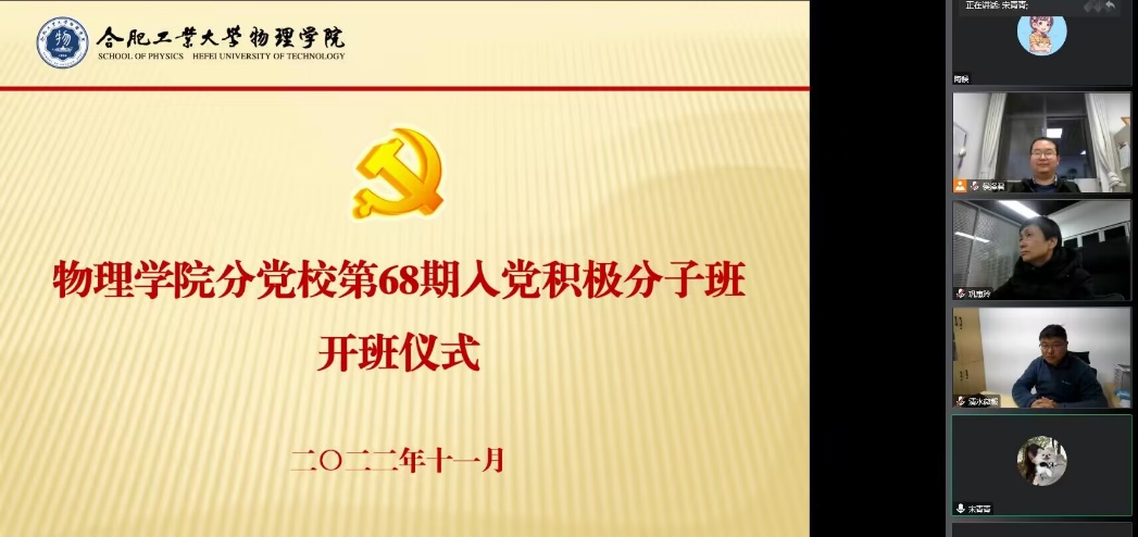 11月30日晚,pp电子游戏平台官网分党校第68期积极分子班举行线上开班仪式,学院分党校有关负责同志、学员班全体学员参会。