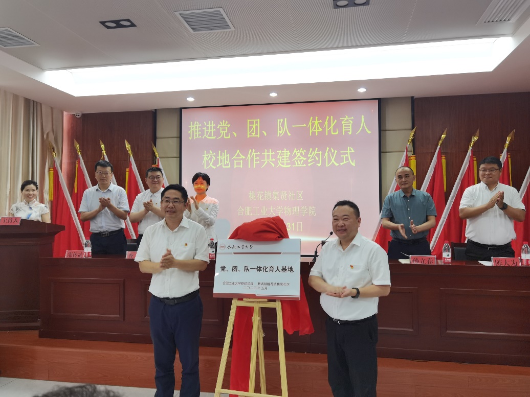 在全国上下深入开展学习贯彻习近平新时代中国特色社会主义思想主题教育之际,为深入学习宣传贯彻党的二十大精神,落实习近平总书记关于党、团、队一体化育人工作重要指示精神,pp电子游戏平台官网与肥西县集贤社区举行“推进党、团、队一体化育人校地合作共建”签约揭牌仪式,仪式在集贤社区举行。肥西县委及相关部门、乡镇负责同志,学校团委、pp电子游戏平台官网负责同志以及师生居民代表参加活动,仪式由集贤社区党委副书记王聪如主持。