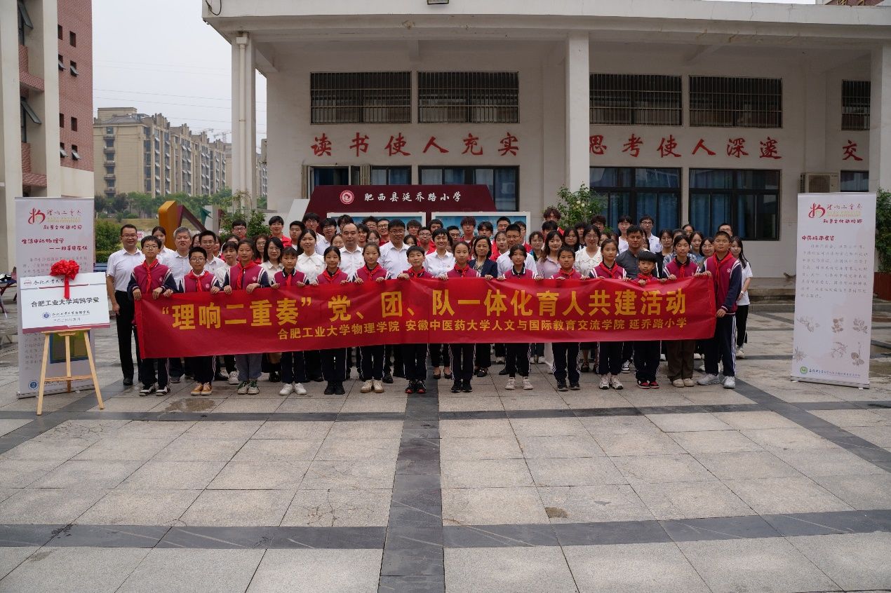 在延乔路小学校园中,来自合工大应用物理学专业和安中医应用心理学专业的大学生党团员志愿者,为少先队员们打造了一条“科普文化长廊”,进行科普实验展示和传统文化宣讲。