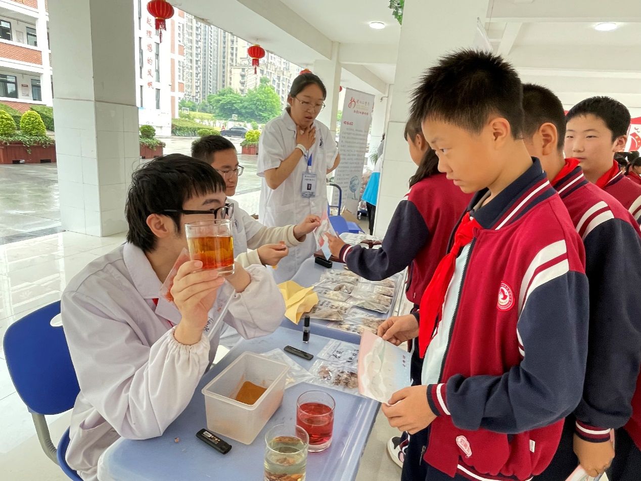 安徽中医药大学的志愿者们为小学生们带来了中医药传统文化进校园主题展示,包括“五禽戏和八段锦”“中药本草香囊制作”和“中药标本识别”等内容,通过志愿者们的详细讲解和亲身体验,少先队员们浸润、学习、体验、感悟中华优秀传统文化,不仅提升了青少年的文化自信和科学素养,同时也发挥了党、团、少先队的组织育人功能,聚焦思想引领,培育时代新人。