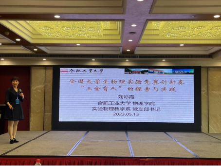 pp电子游戏平台官网实验物理教学系党支部书记刘彩霞做了题为《全国大学生物理实验竞赛创新赛“三全育人”的探索与实践》的分会报告,分享了近年来pp电子游戏平台官网在学校的支持下,如何组织全国大学生物理实验竞赛创新赛的校赛选拔、国赛预赛和决赛,实现全员、全过程、全方位育人。pp电子刘贵乾同学从竞赛前期准备、中期实验装置搭建和实验研究等角度做了题为《量子化能级测量实验仪经验分享》的报告,重点指出在备赛过程中文献调研、认真严谨、团结协作等的重要性。