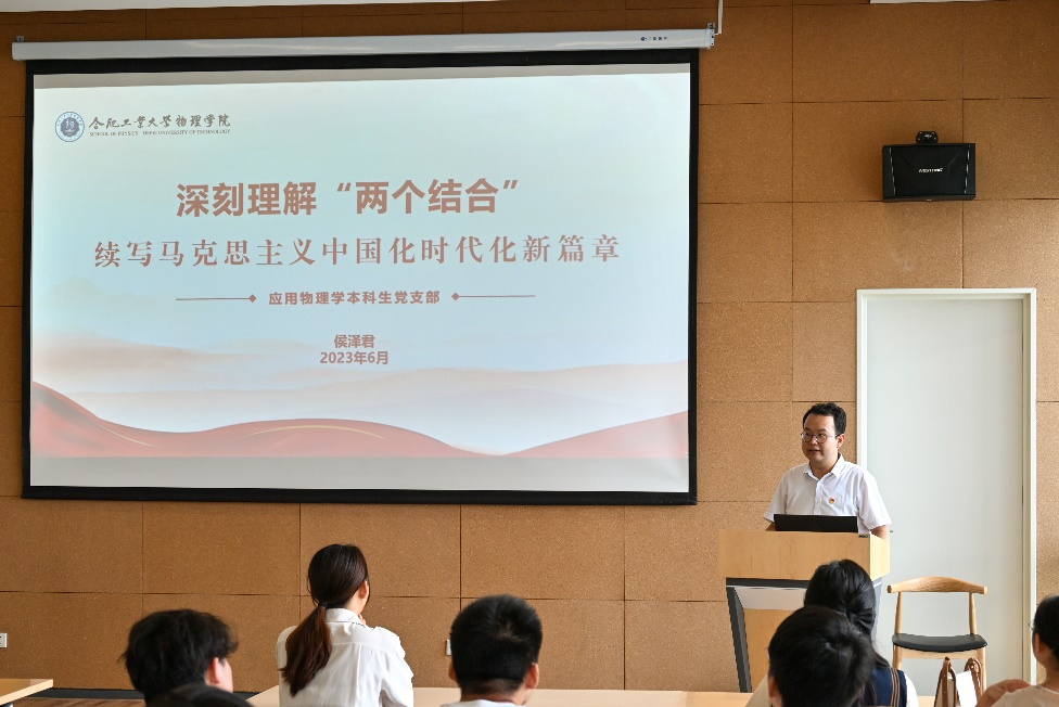 参观过后,同志们来到美术教室,由应用物理学本科生党支部书记侯泽君主讲“深刻理解‘两个结合’,续写马克思主义中国化时代化新篇章”现场党课。党课围绕习近平总书记在文化传承发展座谈会上的重要讲话精神,全体党员深入学习了“马克思主义与中华优秀传统文化相结合”的内在逻辑和重要意义。党员同志们就学习习近平总书记关于建设中华民族现代文明的重要讲话精神和参观过程中的心得感受进行了发言交流。学院党委副书记兼纪委书记陈大为对活动进行了总结,号召全体同志进一步坚定理想信念、弘扬优秀文化、涵养家国情怀,自觉担负起建设文化强国的重要使命。