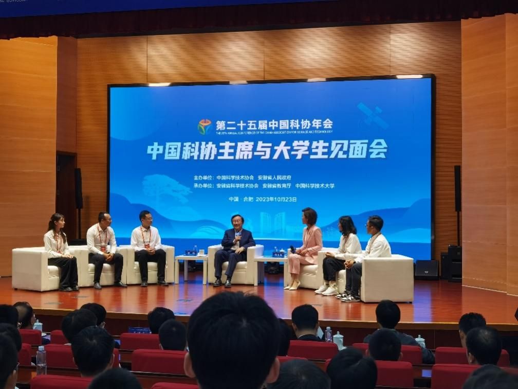 10月22日,第二十五届中国科协年会在合肥隆重开幕。23日下午举行了年会重头戏——中国科协主席与大学生见面会,pp电子20名优秀学子受邀参加见面会活动,与中国科协主席万钢面对面交流。中国科协党组成员、书记处书记王进展,安徽省政协主席、党组书记唐良智,安徽省人民政府副省长任清华,中国科学技术大学党委书记舒歌群等出席见面会。