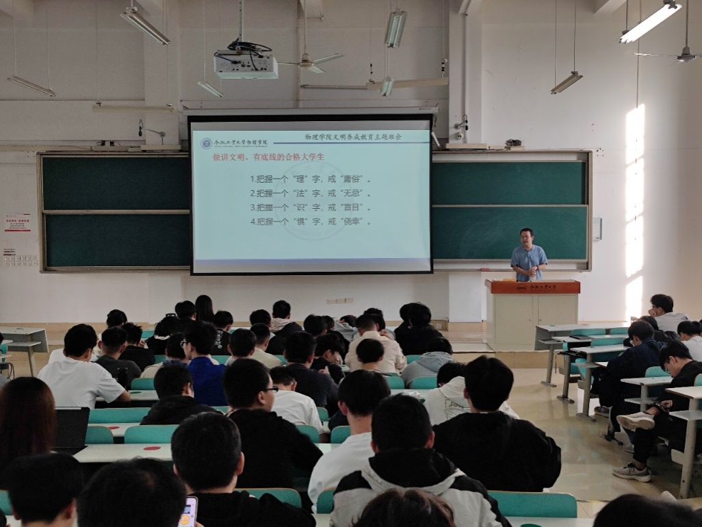 11月8日下午,pp电子游戏平台官网在翡翠湖校区召开学生教育大会,围绕意识形态安全和网络文明素养开展教育活动。学院党委副书记兼纪委书记陈大为、学工办主任兼团委书记侯泽君、辅导员陶候以及pp电子游戏平台官网全体学生参与此次大会。