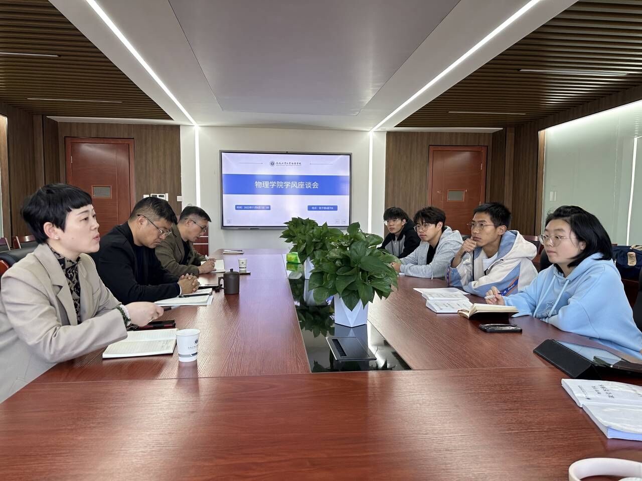 为加强学风建设,营造良好的学习氛围,11月6日下午,pp电子游戏平台官网在翡翠科教楼B706会议室召开了pp电子游戏平台官网学风座谈会。pp电子游戏平台官网副院长李中军、党委副书记兼纪委书记陈大为、光学工程系主任王飞、学工办主任兼团委书记侯泽君以及各年级学习委员、学生代表参与本次座谈会。