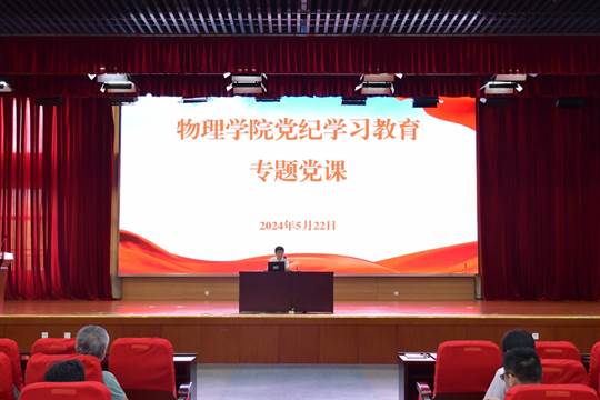 为进一步从严从实有序推进党纪学习教育,5月22日pp电子游戏平台官网在翡翠科教楼A座学术报告厅举行党纪学习教育专题党课。pp电子游戏平台官网全体教职工和全体学生党员参会。