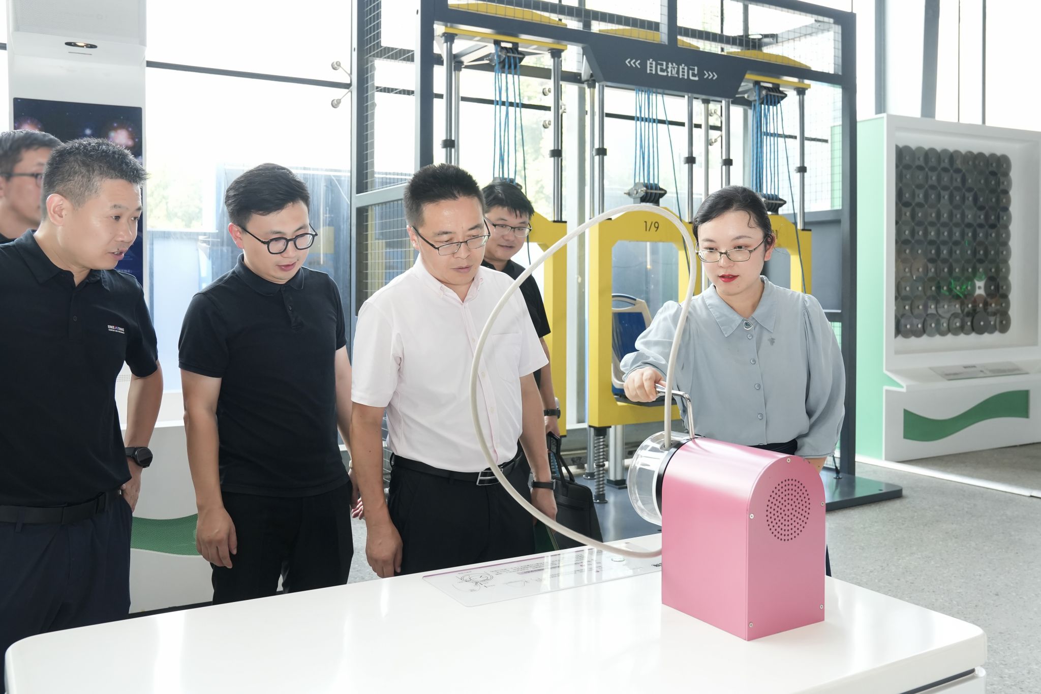 党委书记崔健、院长高伟清一行实地参观了安达创展园区内的创想工坊与数字创意楼,详细了解了展品的工作原理、表现形式等,沉浸式感受安达创展将创意设计与前沿科技融合,以新颖的数字媒体技术展现文化内涵,通过寓教于乐的形式向公众传递科学魅力。