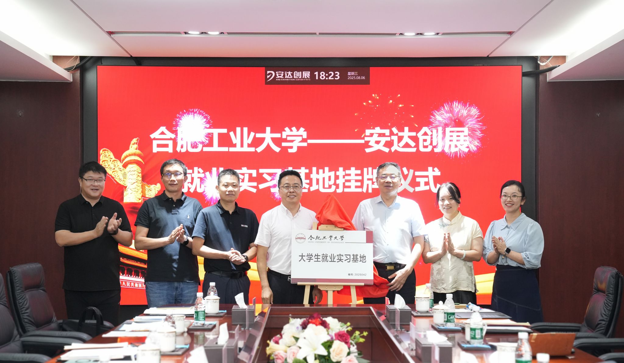 pp电子游戏平台官网与合肥安达创展科技股份有限公司举行了就业实习基地挂牌仪式,安达创展副总经理李颖与pp电子游戏平台官网党委副书记陈大为签订了《pp电子游戏平台官网就业实习基地协议》,王正前董事长与崔健书记共同为就业实习基地揭牌,标志着双方合作迈入新阶段。