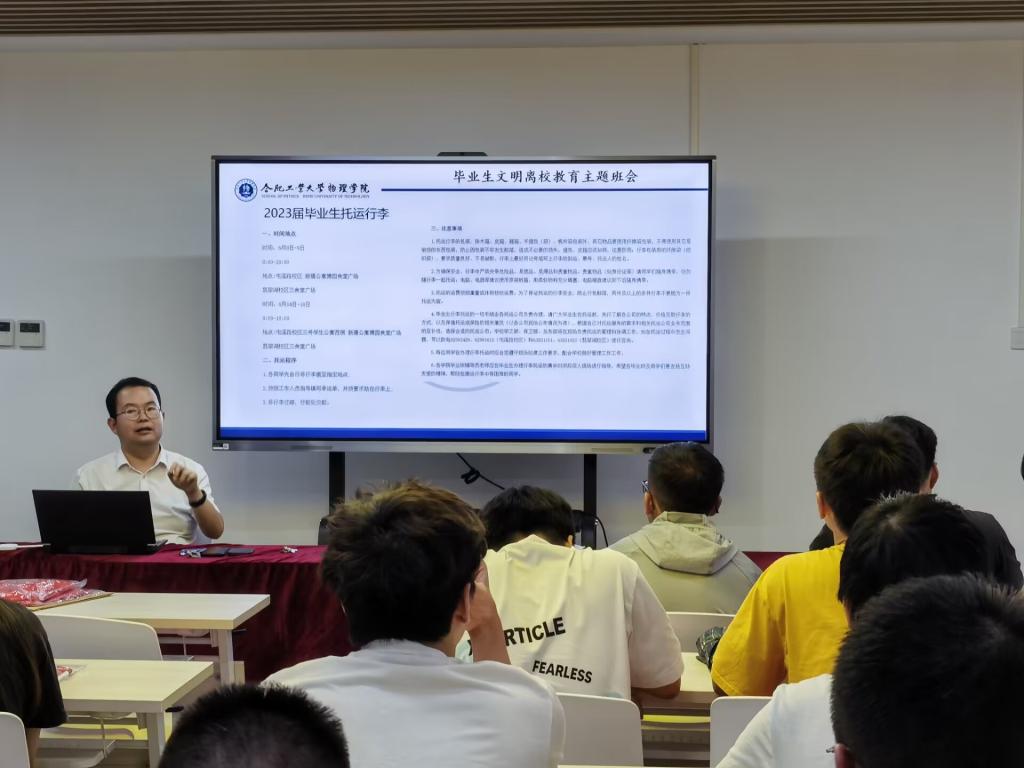 6月10日,pp电子游戏平台官网在翡翠湖校区开展了2023届毕业班“明理拾光”毕业生文明离校教育主题班会。