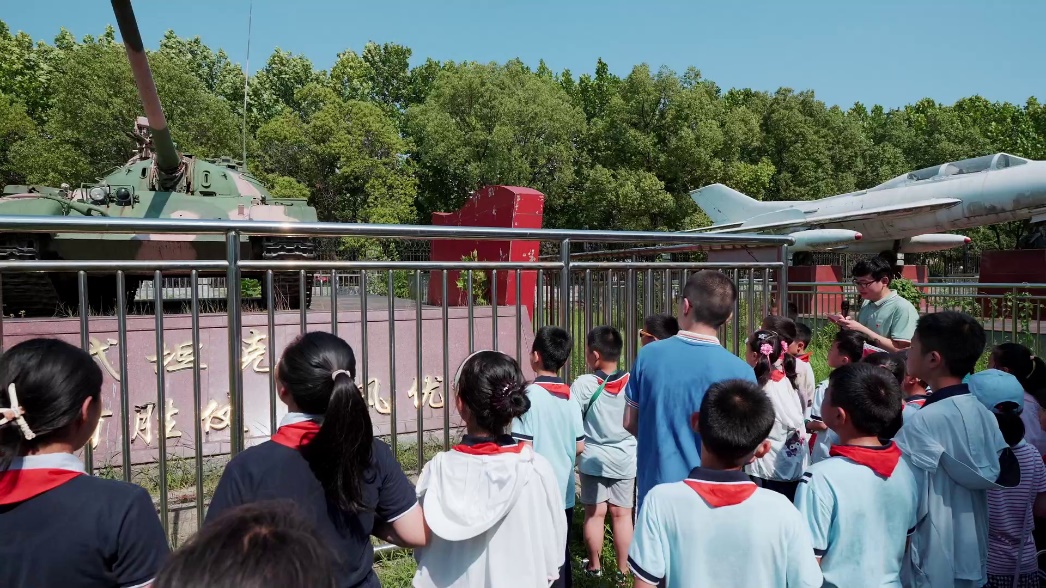 穿过长长的绿茵道,实践营成员带领全体少先队员来到pp电子游戏平台官网翡翠湖校区工程认知博物馆户外展区,向少先队员们详细介绍了展区内陈列的59式坦克、歼教六超音速飞机、54式122毫米榴弹炮、全自动燃油锅炉与吸油机等展品,并向全体少先队员进行了一场别开生面的国防科普教育。通过陈列展品与最新军事装备的对比,祖国的军事实力和科技水平不断进步与提升的画卷在全体少先队员眼前徐徐展开。