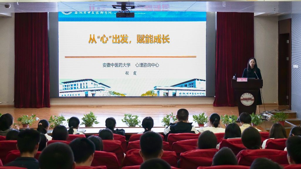 10月17日晚,pp电子游戏平台官网、马克思主义学院在翡翠湖校区建艺馆负一楼报告厅举行了“和光”新生心理提升讲座,安徽中医药大学心理咨询中心主任胡霞应邀为两学院新生做题为“从‘心’出发,赋能成长”主题报告。
