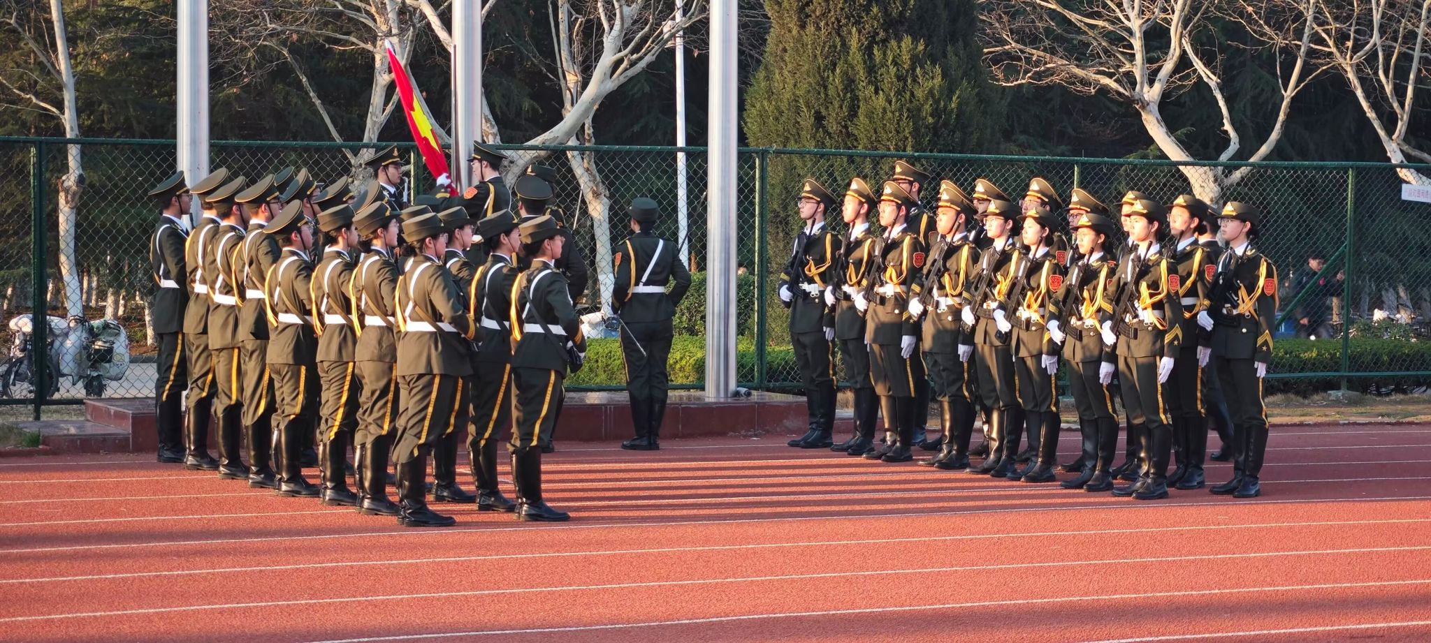 春日清晨,曙光初绽。校大学生国旗护卫队英姿飒爽,迈着铿锵步伐护送五星红旗走上升旗台。《义勇军进行曲》奏响,五星红旗冉冉升起、迎风飘扬。全体师生庄严肃立,行注目礼,用雄壮国歌声抒发爱党爱国爱校之情。