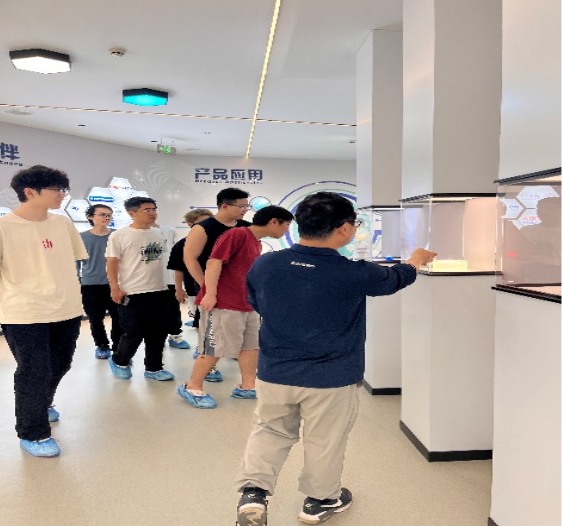 随后,同学们在公司技术骨干的带领下深入生产线。技术骨干们结合实际生产设备,详细讲解了晶体生长的多种方法与工艺流程,从原料配比、晶体生长环境控制到成品检测,每一个环节都深入浅出地为同学们答疑解惑。在公司成果展示厅内,同学们近距离接触到了公司的主流产品,感受磁光晶体在光通信、量子通信预处理等前沿领域多元化的应用场景,同学们对所学专业的实际应用有了更加直观的认识。