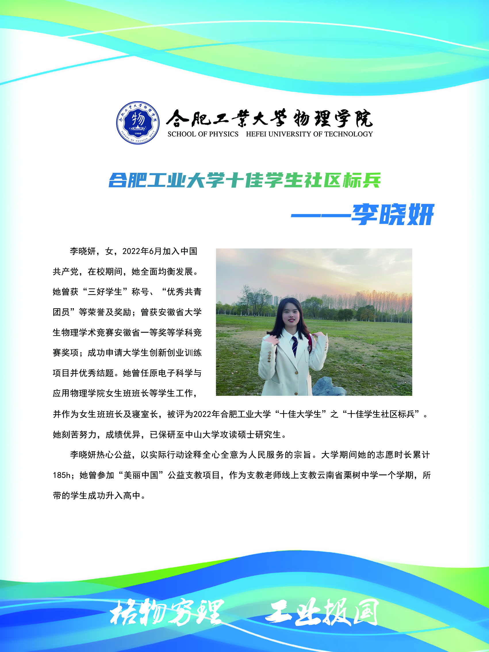pp电子游戏平台官网十佳学生社区标兵——李晓妍