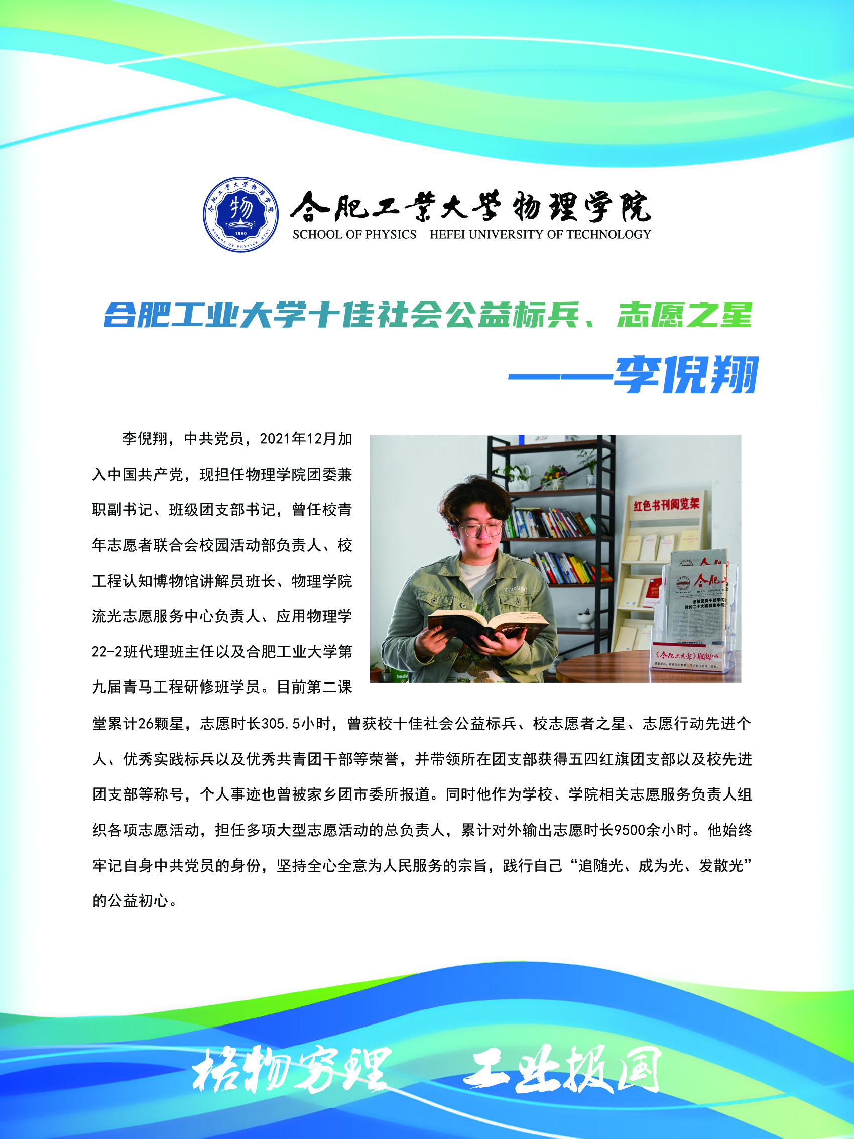pp电子游戏平台官网十佳社会公益标兵、志愿之星——李倪翔