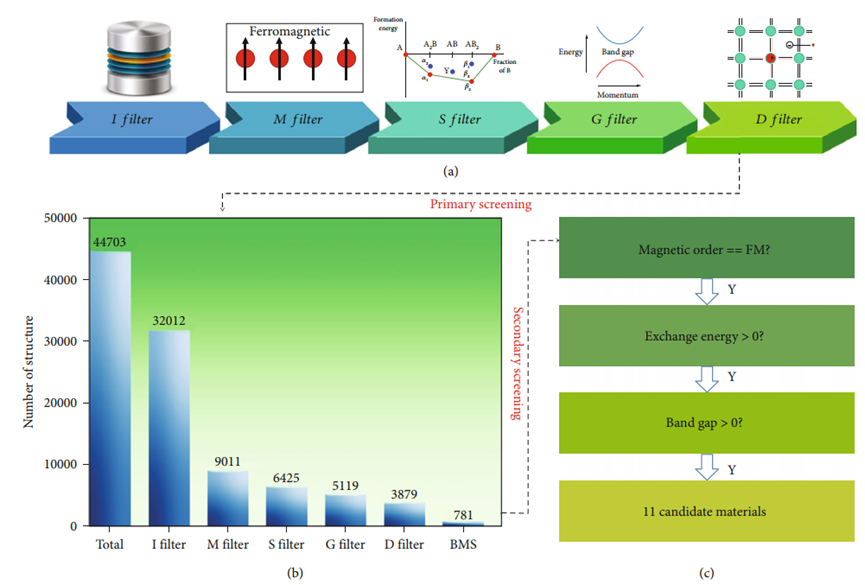 该成果以“High-Throughput Computational Screening for Bipolar Magnetic Semiconductors”为题,于2022年3月15日发表在《Research》期刊上。《Research》是中国科协与美国科学促进会于2018年共同创办的定位为国际化、高影响力、综合性科技期刊,是美国《Science》杂志自1880年创刊以来第一本合作期刊。文章第一单位为pp电子游戏平台官网,第一作者为物理系汪海迪副研究员,通讯作者为中国科学技术大学杨金龙院士和李星星副教授。