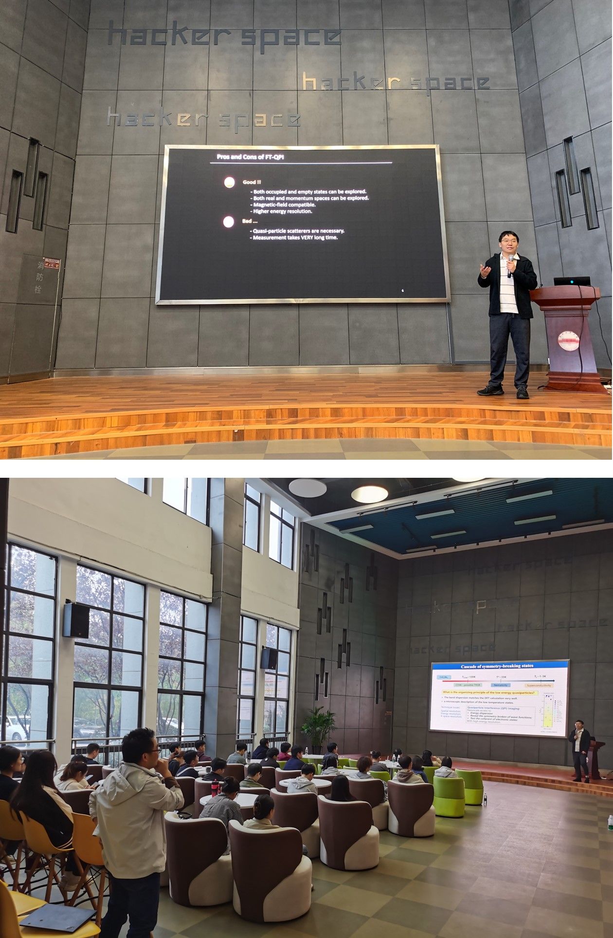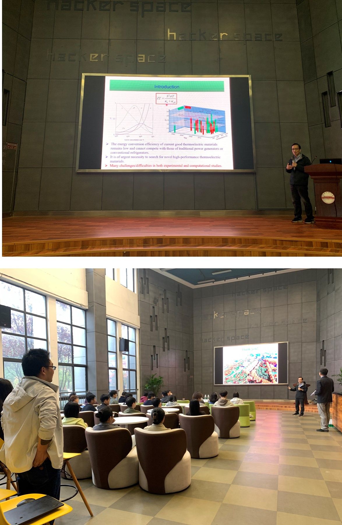11月15日上午,pp电子游戏平台官网在翡翠科教楼B座大数据中心报告厅举办学术报告会,武汉大学刘惠军教授和中国科学技术大学王震宇教授受邀分别做了“人工智能助力高性能热电材料的高通量筛选”和“笼目超导体中超导序参量与竞争电子序的谱学研究进展”的学术报告,pp电子游戏平台官网副院长李中军教授主持报告会。