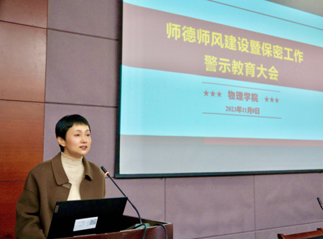 11月8日14:00,pp电子游戏平台官网在翡翠科教楼A座第五会议室开展师德师风建设主题党课暨警示教育活动。会议由pp电子游戏平台官网党委书记巩惠玲主持,pp电子游戏平台官网全体教职工参加会议。